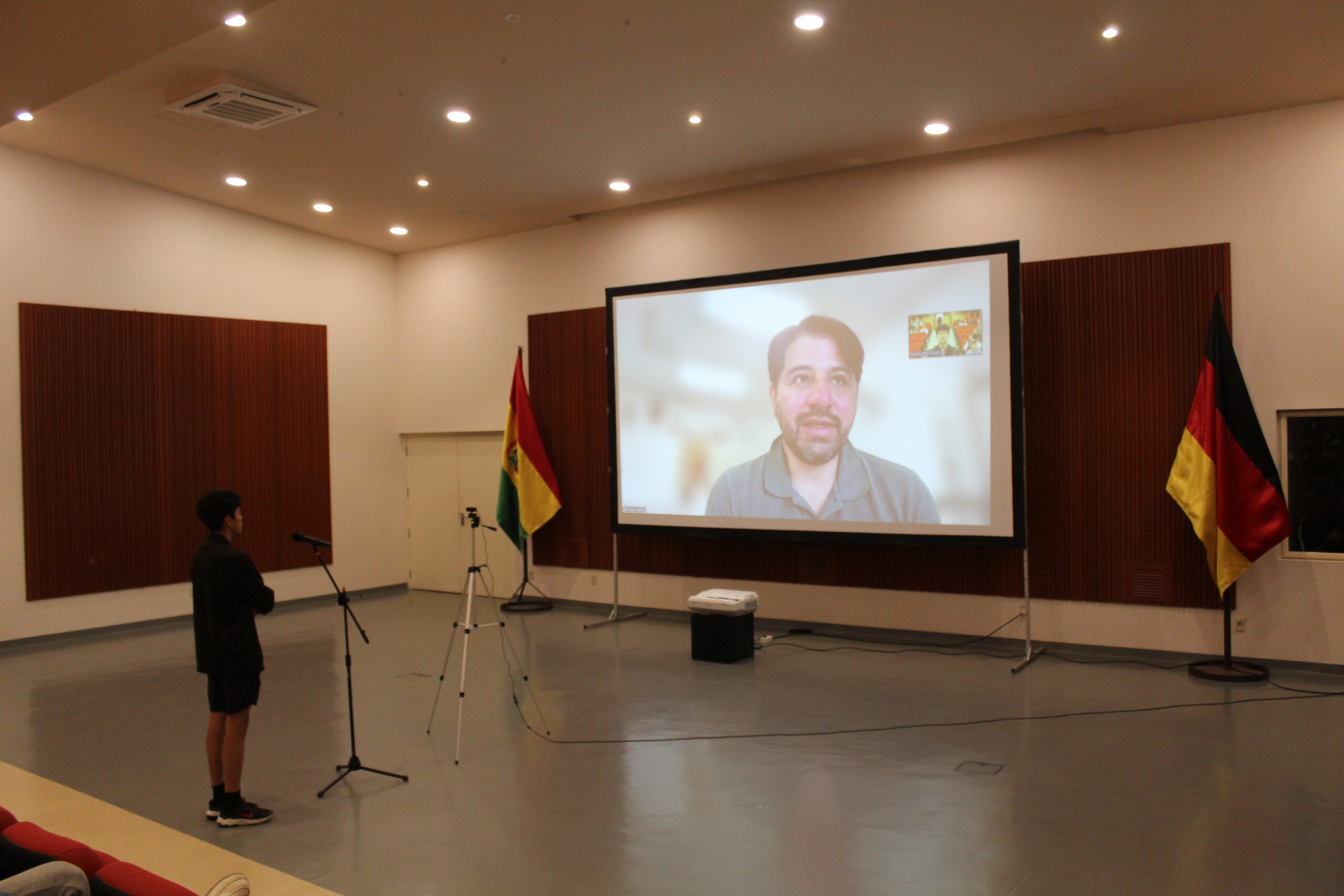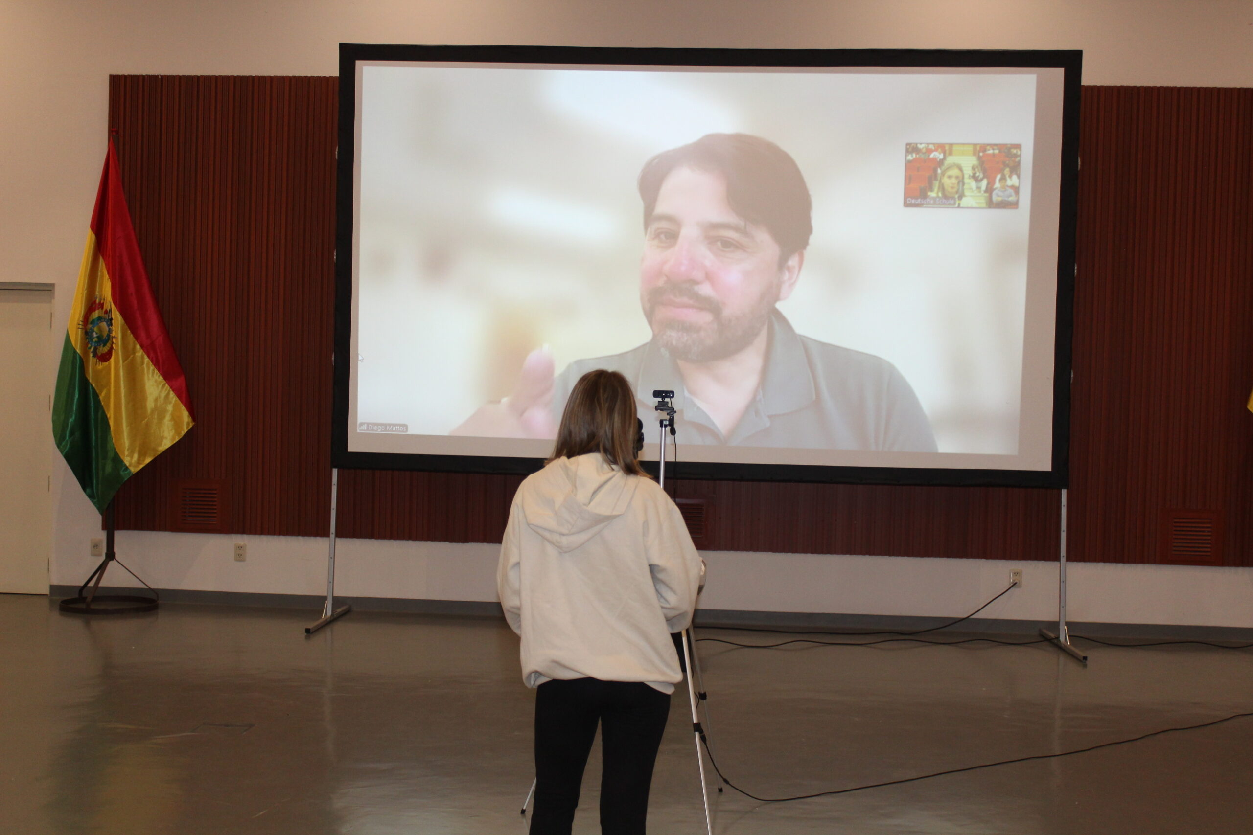Während einer zweistündigen Unterrichtsstunde tauschten sich Diego Mattos, der in den Vereinigten Staaten lebt, und die Schülerinnen und Schüler über verschiedene Aspekte seines Romans aus, den sie im ersten Schulhalbjahr gelesen hatten. Das Werk, das sich mit den unterirdischen Flüssen von La Paz auseinandersetzt, zog die jungen Leserinnen und Leser besonders in seinen Bann.