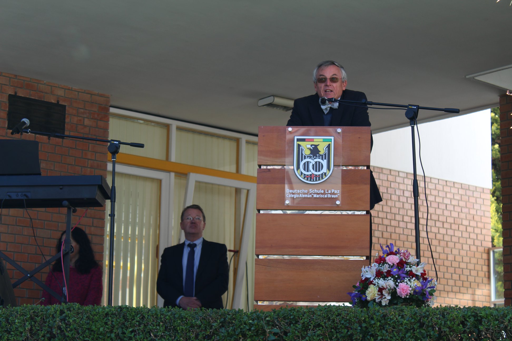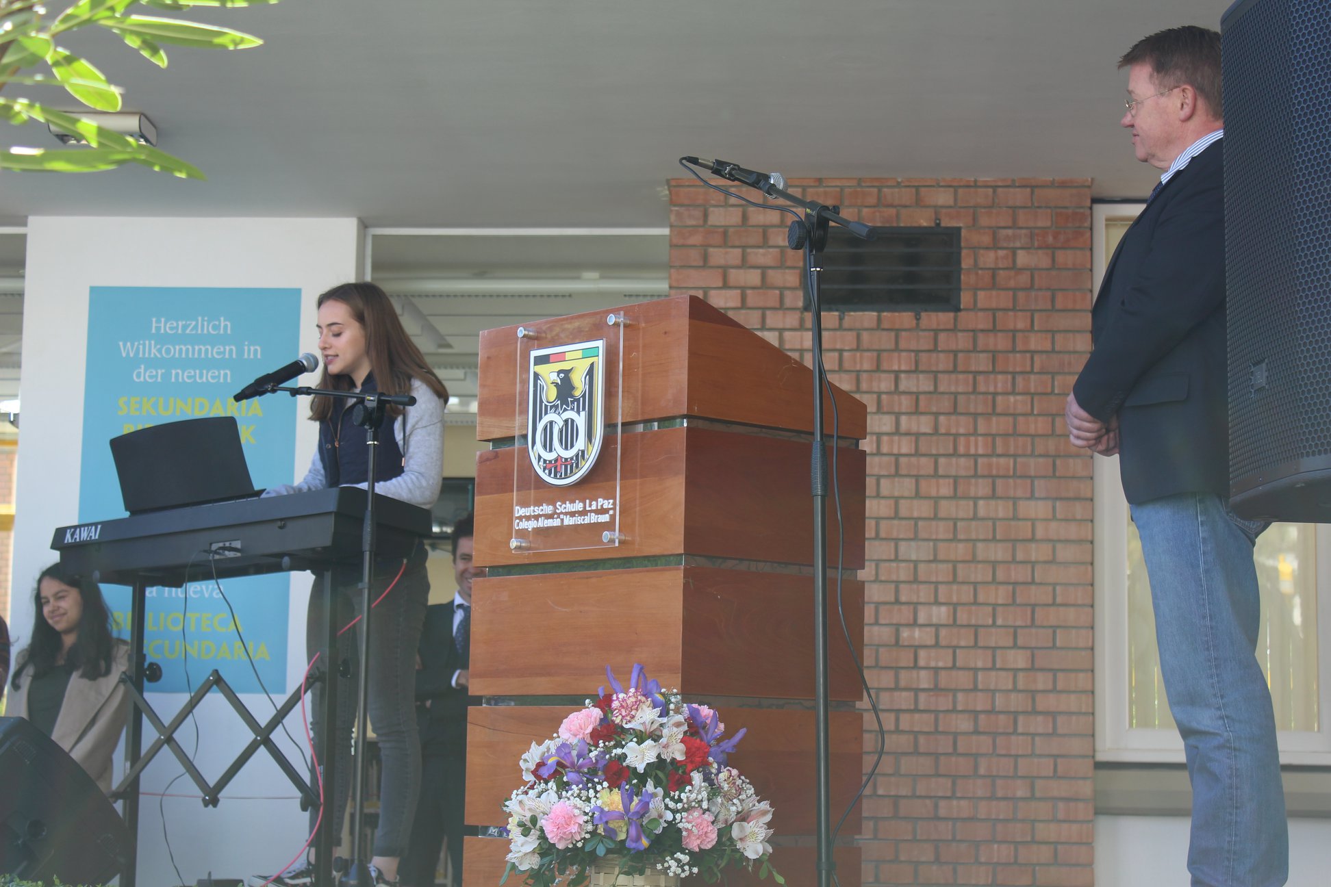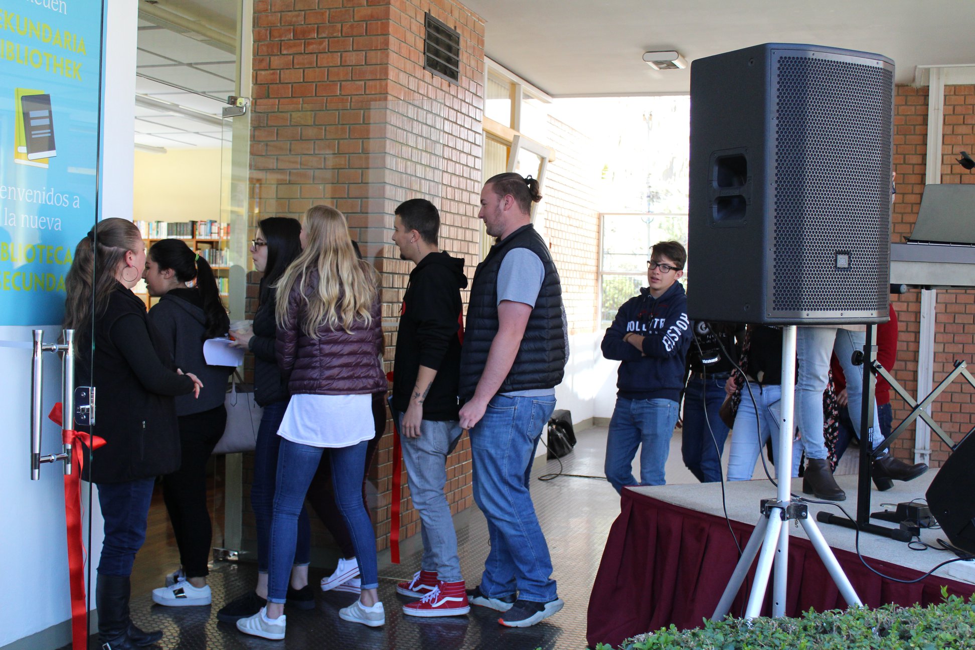 In Anwesenheit vieler Schülerinnen und Schüler der Sekundaria fand heute Morgen die Einweihung unserer neuen Sekundariabibliothek statt. Dazu sprachen Herr Michael Heuchel, Vorsitzender des Deutschen Schulvereins, Herr Adrian Seufert, Ständiger Vertreter der Deutschen Botschaft in Bolivien, unser Schulleiter, Herr Volker Stender-Mengel, und Frau Ana María Grisi, stellvertretende Schulleiterin unserer Schule.