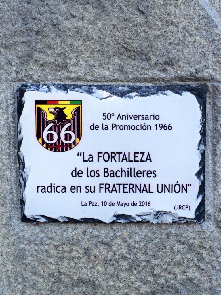 Anlässlich unserer diesjährigen Kermesse, nun feierte dieser Abschlussjahrgang 1966 seine Promo 50 años, wurde der Schulleitung jene Jahrgangsurkunde von 1991 übergeben und gleichzeitig, an der Rückseite des Denkmals, eine neue Gedenktafel feierlich enthüllt.