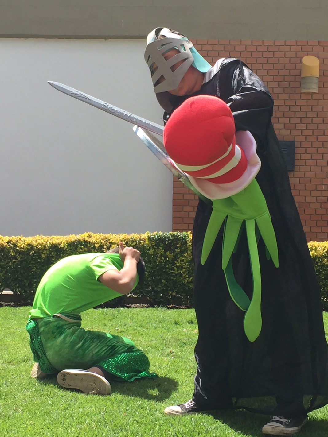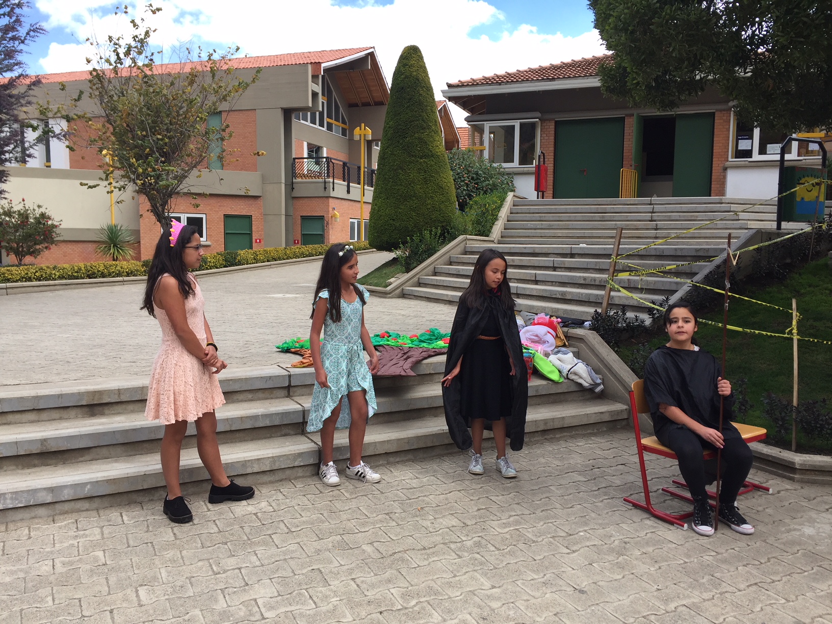 Schülerinnen und Schüler der P6B beschäftigten sich während des ersten und einem Teil des zweiten Bimesters mit der griechischen Mythologie. In Gruppen von 4 oder 5 Personen schrieben sie ihre eigenen Drehbücher über verschiedene griechische Mythen, teilten dann die Rollen auf, probten und führten ihr Stück auf.