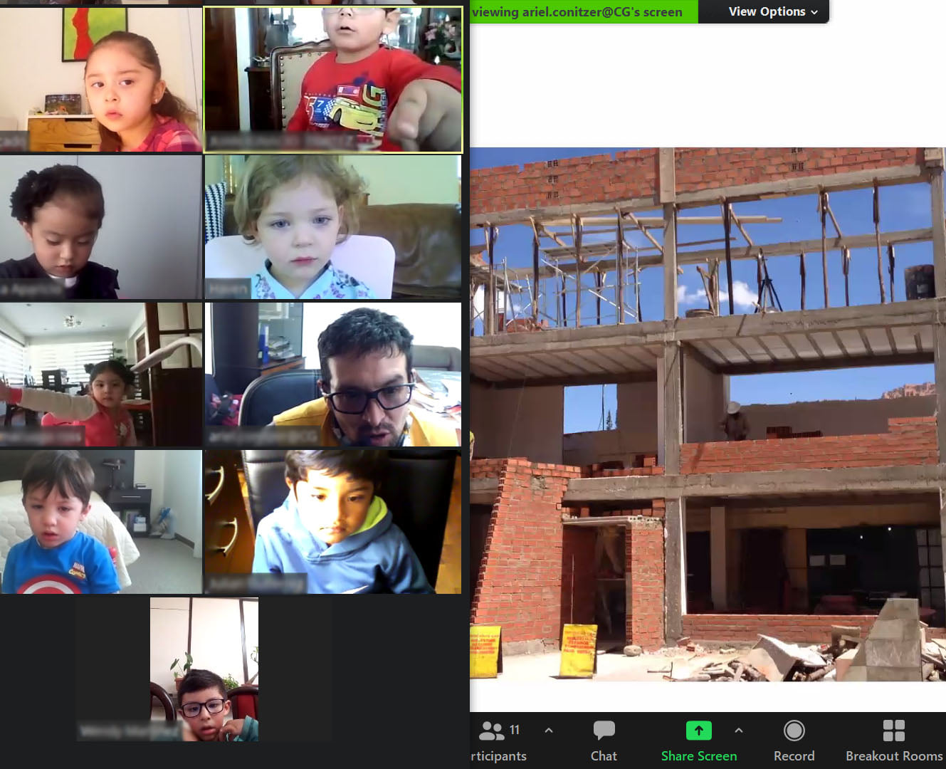 Ariel zeigte den Kindern die Materialien, die verwendet werden, und die Schritte, die beim Bau eines Hauses befolgt werden. Er zeigte ihnen auch die Personen, die auf der Baustelle arbeiten und ihre entsprechende Schutzkleidung.