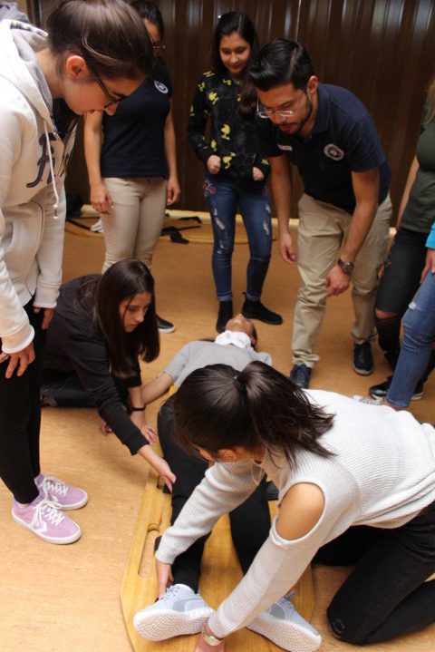 Gracias a la colaboración del Grupo Médico de Enseñanza La Paz (Hospital Universitario Nuestra Señora de La Paz) nuestros estudiantes del S5 y S6 recibieron un curso intensivo de capacitación en atención prehospitalaria básica (primeros auxilios), en el cual aprendieron con mucho interés cómo auxiliar a una persona en situaciones de traumatismos, reanimación cardiopulmonar, traslado de pacientes, etc.