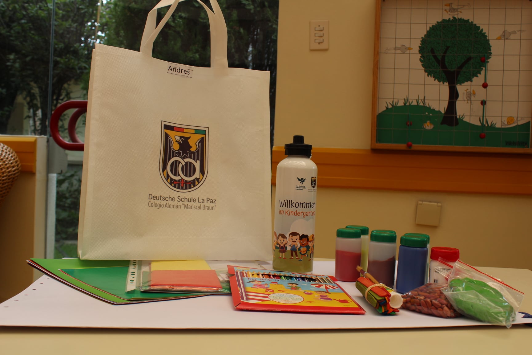 A partir de hoy, los padres de familia de los niños de Kindergarten pueden recoger los materiales para las clases virtuales. Los niños de K1 también recibirán un regalo de bienvenida.