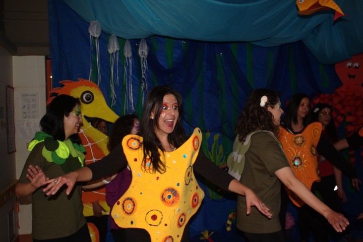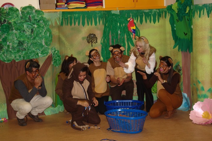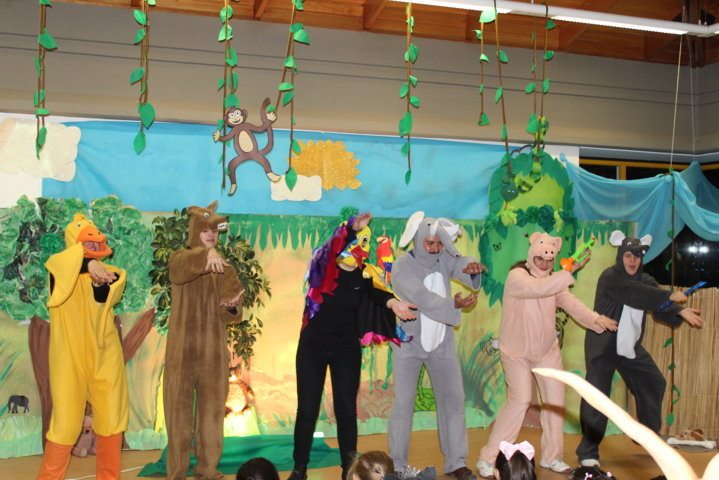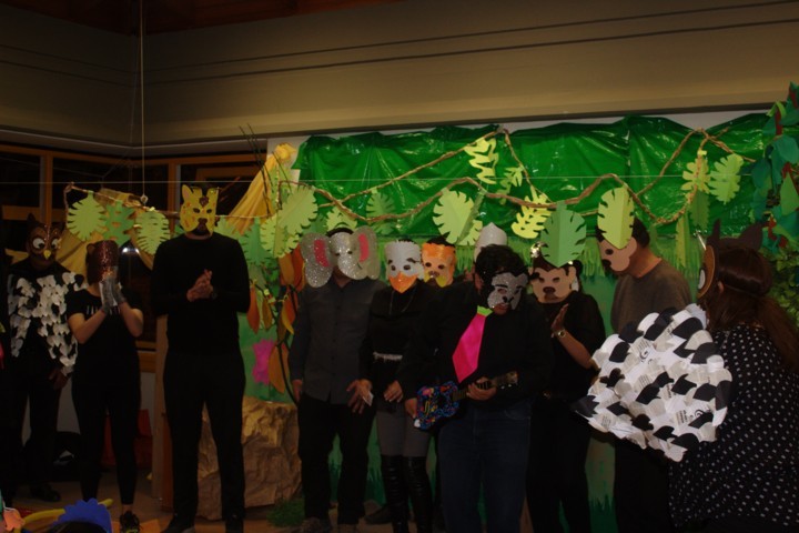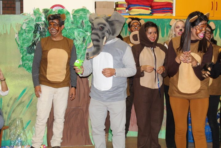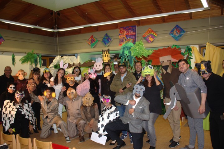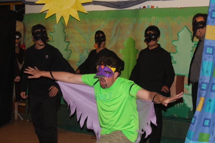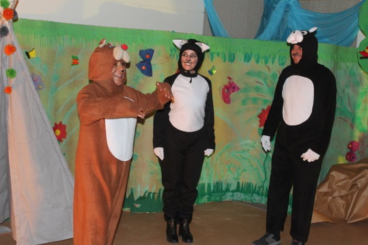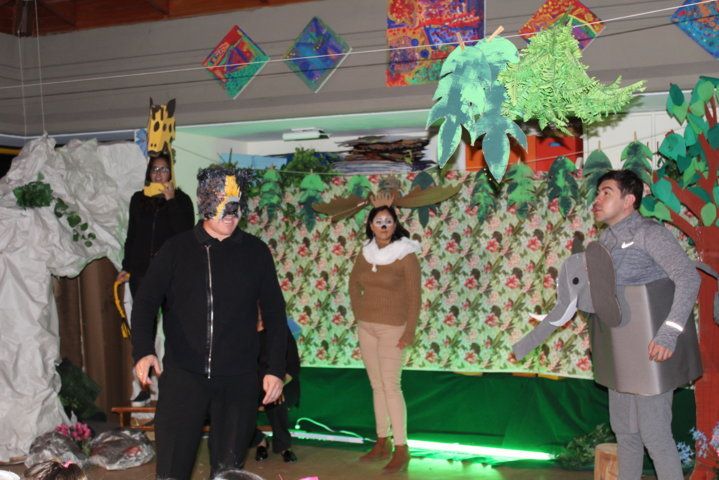Los padres de familia prepararon una obra de teatro para sus hijas/os con el lema del colegio: «Somos iguales y a la vez diferentes». Hubo dos noches maravillosas. Las/os niñas/os quedaron fascinados e impresionados con la grandiosa actuación de sus padres. Cada curso se transformó en un escenario muy creativo.