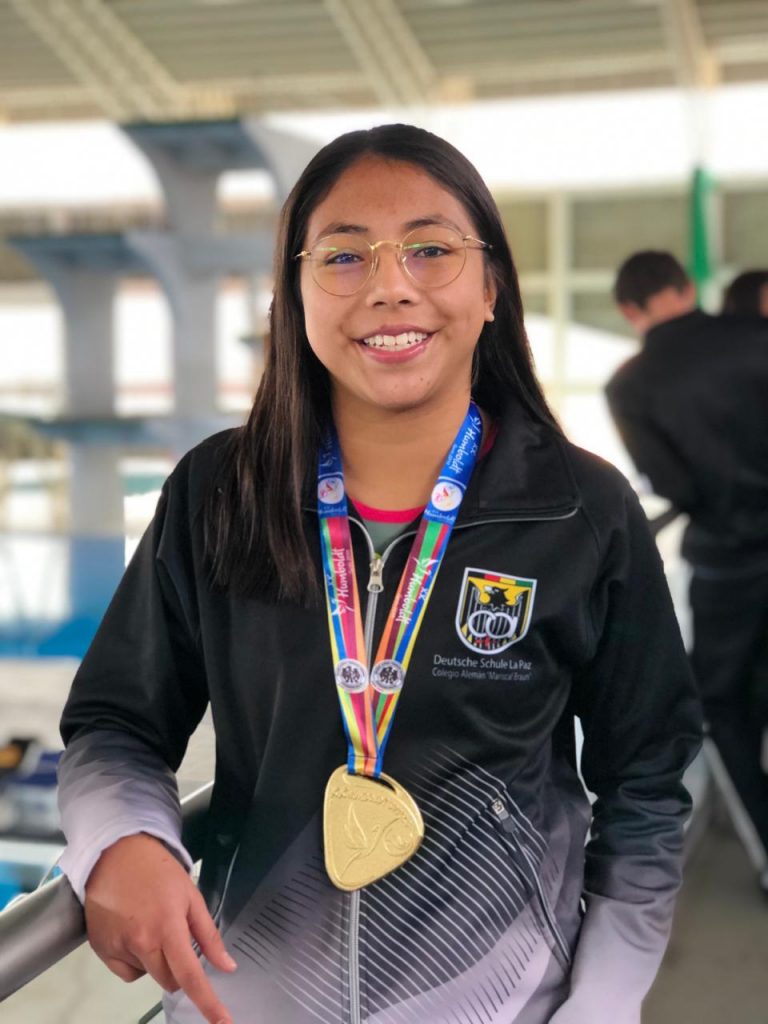 Las emocionantes competencias deportivas de los Juegos Humboldt 2019 Cochabamba-Bolivia, continúan y hoy nuestra querida Daniela Aguilar (S4A) nos dio la alegría de otra medalla de oro, consiguiendo el primer puesto en la final de natación damas, estilo pecho.