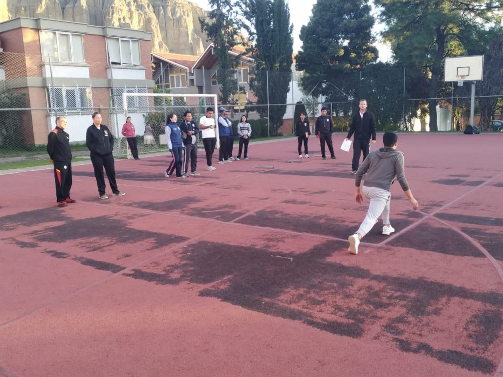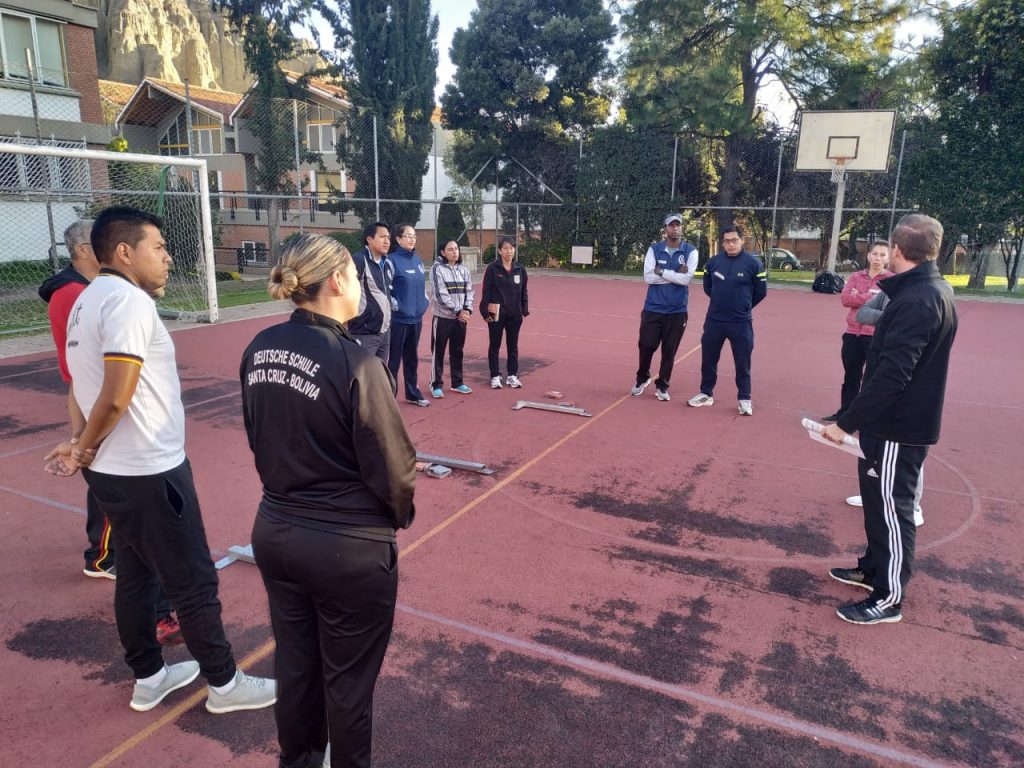 Aprovechando la llegada del experto alemán en atletismo Oliver Scheer, nuestro colegio organizó un seminario de entrenamiento avanzado de atletismo en el que participaron profesores de educación física de los colegios alemanes de Santa Cruz, Cochabamba, Sucre y La Paz, así como colegios de la zona Sur como el Colegio Montessori, el Colegio Saint Andrews, Cumbre y el centro de entrenamiento de la Fuerza Aérea Boliviana de la ciudad de El Alto.