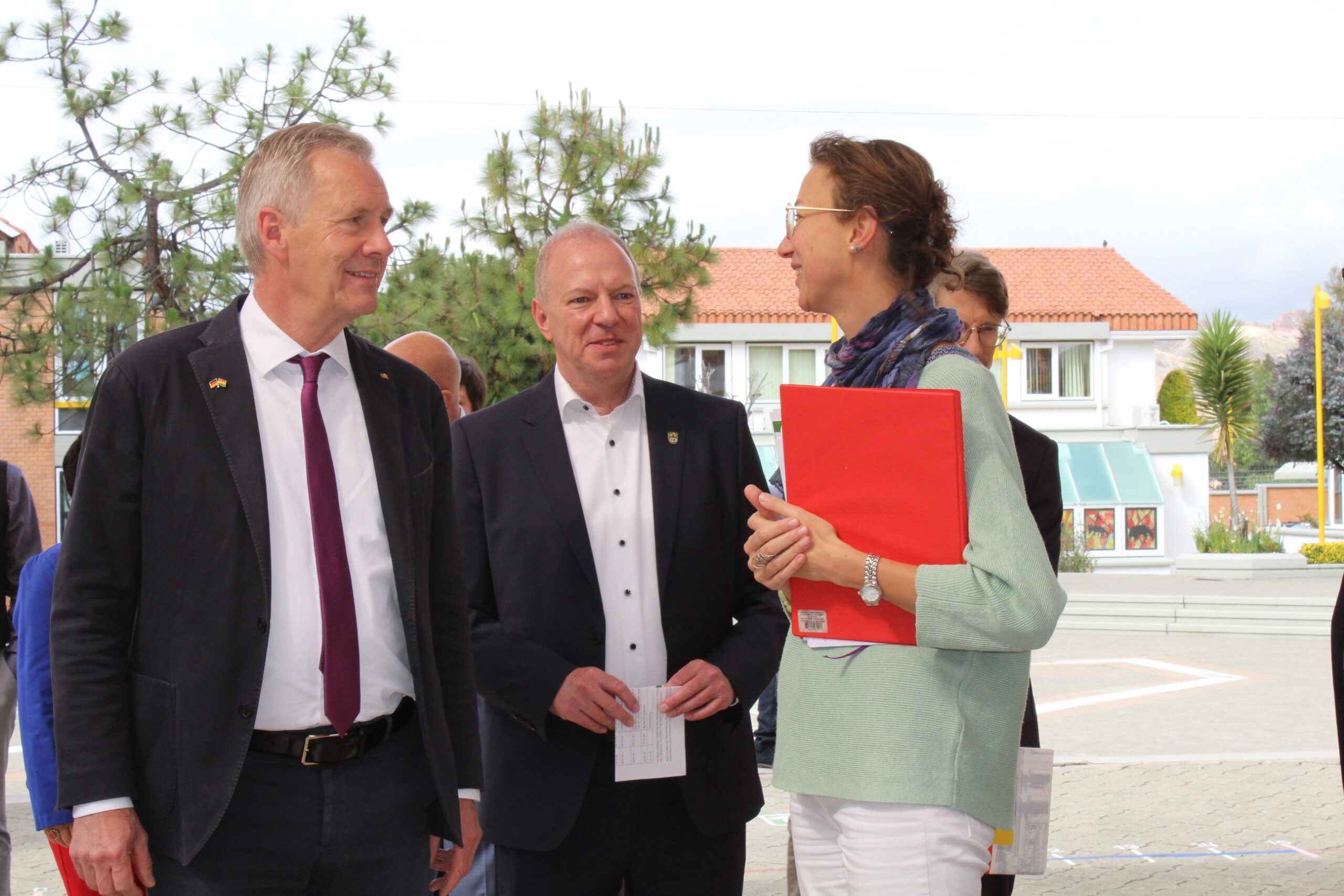La delegación estuvo conformada por Tarmo Dix, Ministro Consejero de la Embajada de Alemania en Bolivia; Livia Puglisi, Jefa de Despacho del señor Wulff; Kay Brügmann, representante de la KMK; Michael Heuchel, Presidente del Centro Escolar Alemán; Andreas Zimmermann, Director del Colegio Alemán “Mariscal Braun”; Marianela Wayar, Subdirectora del Colegio Alemán “Mariscal Braun”; así como por miembros del Centro Cultural Alemán, del Centro Escolar Alemán y de la Dirección ampliada.